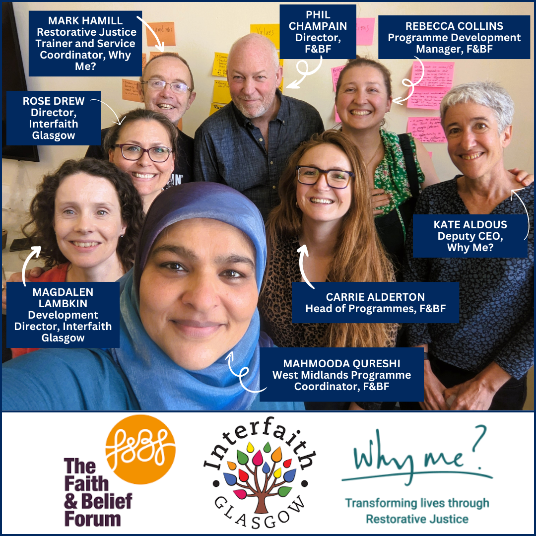 The Faith & Belief Forum, with partners Why Me? and Interfaith Glasgow, are exploring how Restorative Justice practices can be applied to address hostility against and between faith communities in Solihull and Glasgow.